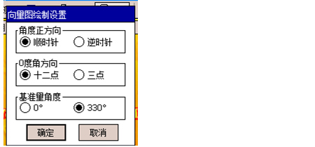 7.向量圖繪制可以設(shè)置正方向為順時針或逆時針;可以設(shè)置0度角方向為十二點或三點鐘方向,基準(zhǔn)量角度為330°或0°,可以設(shè)置下表類型和電流電壓半徑比,符合各種用戶習(xí)慣;