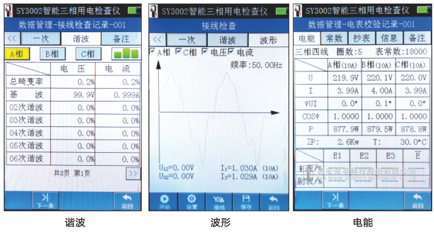 1. SY3002智能三相用電檢查儀具有6路輸入(3路電壓、3路電流),支持三相四線和三相三線接線方式。
